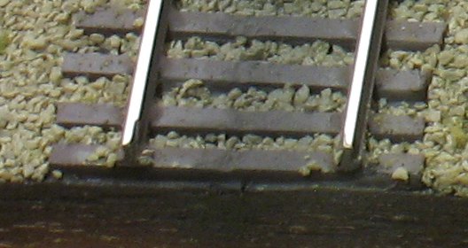 Bei der Selbstbauweiche sieht man, dass die Zungenspitzen angefast sind. Wie es auch bei den Modulübergängen üblich ist.