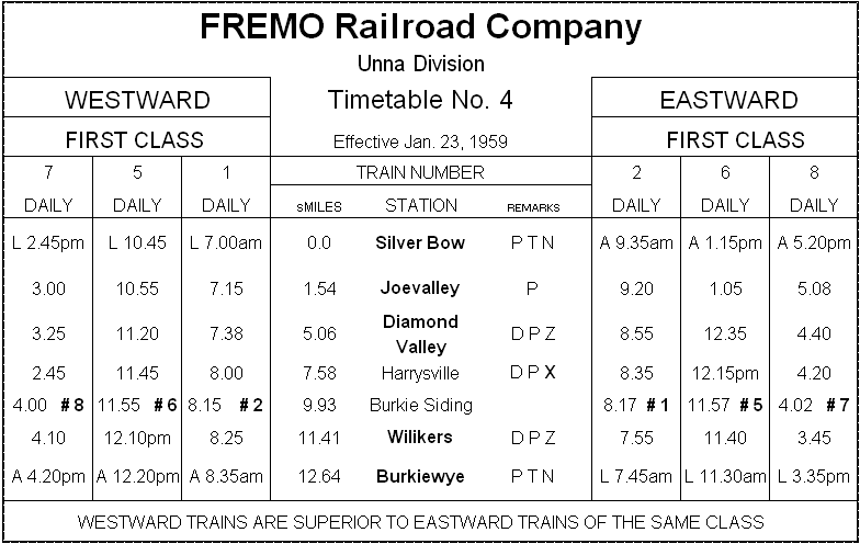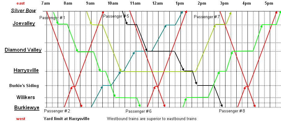 | Local Return, vom Vortag, mit Wagen für Gerard J. Wilikers; Diamond Valley: Bakery und Team track, Joevalley: Team track und Feed & Seed |