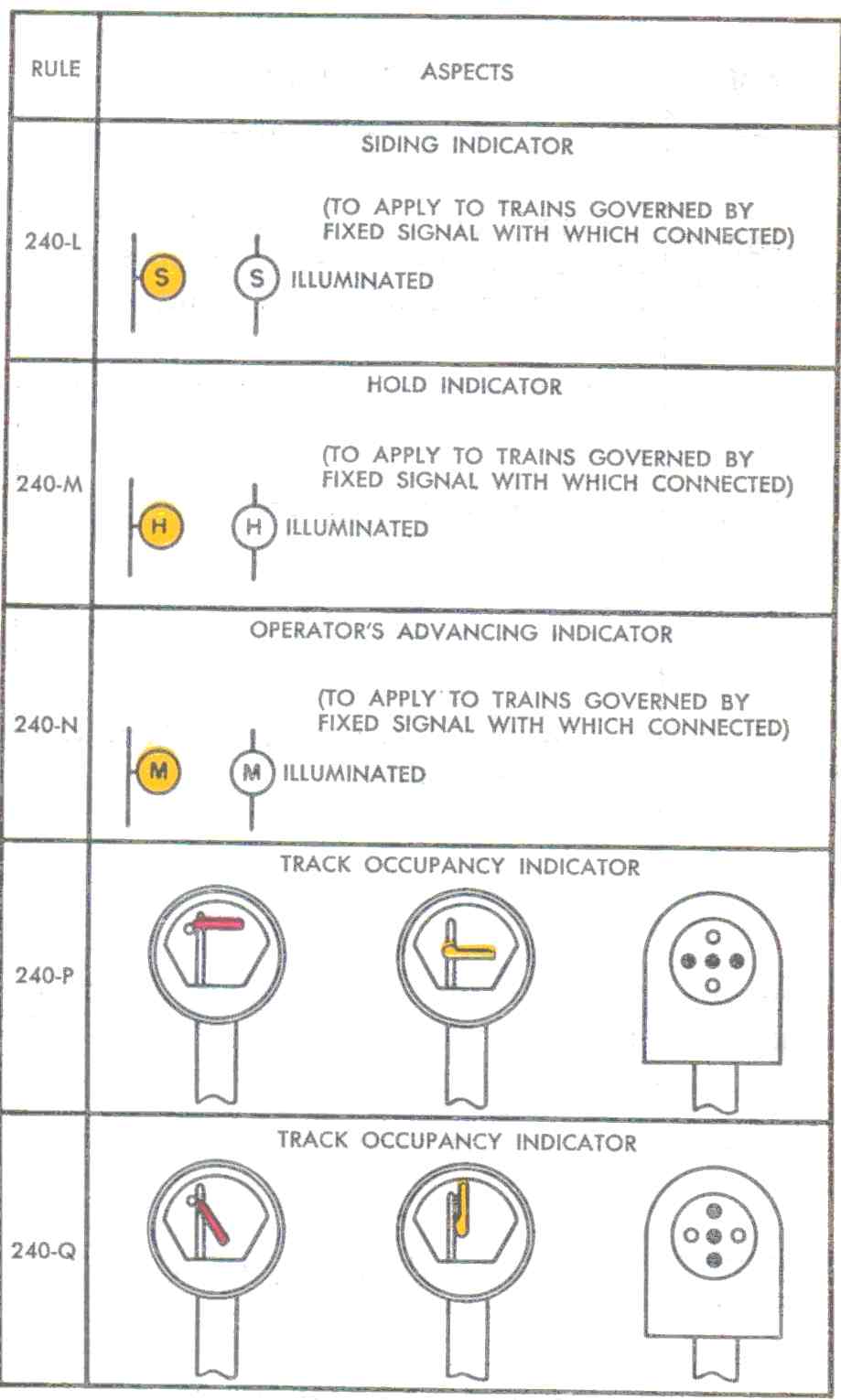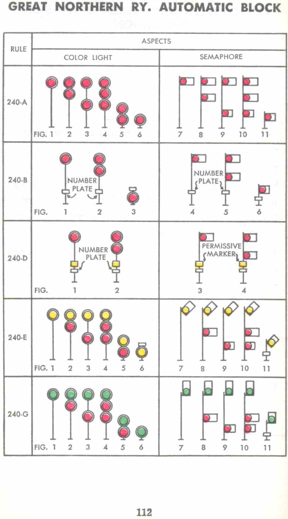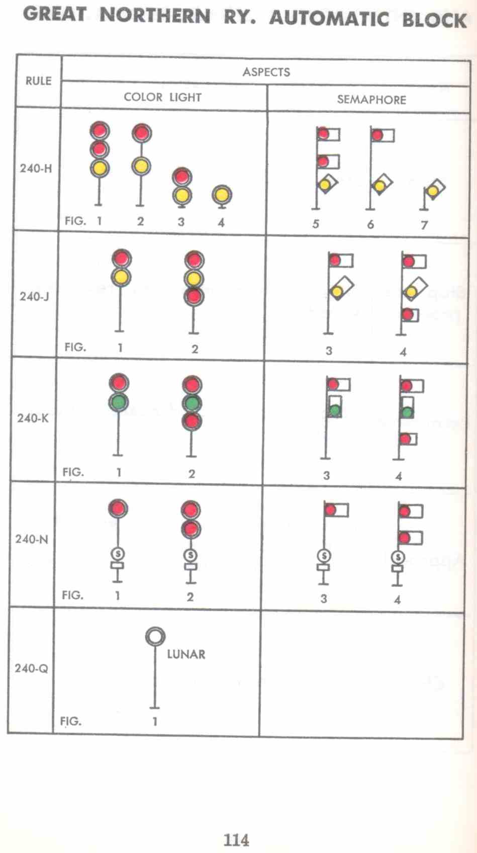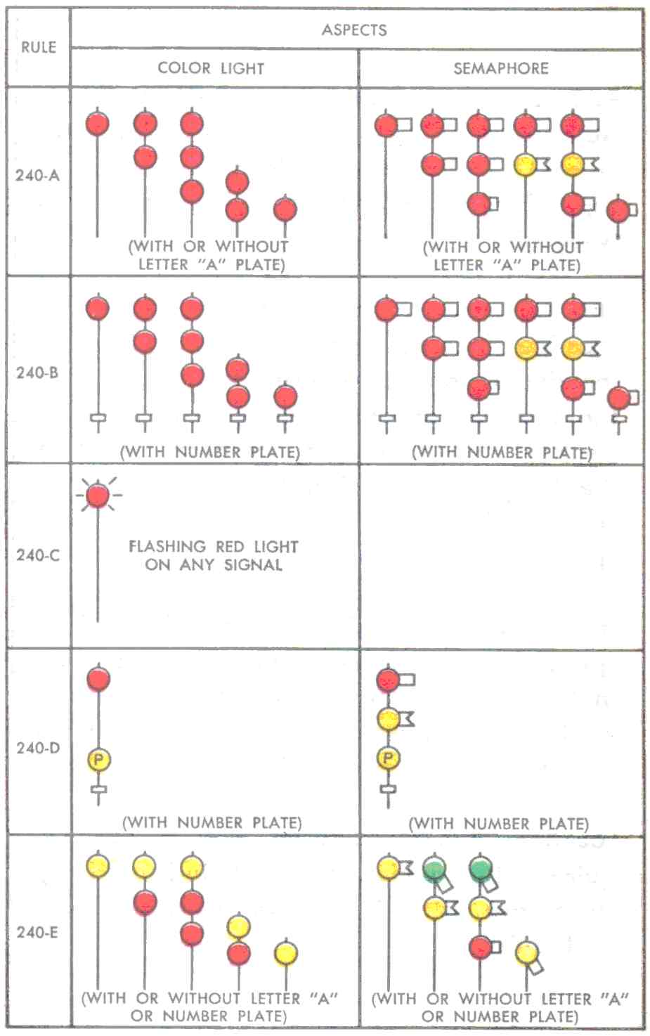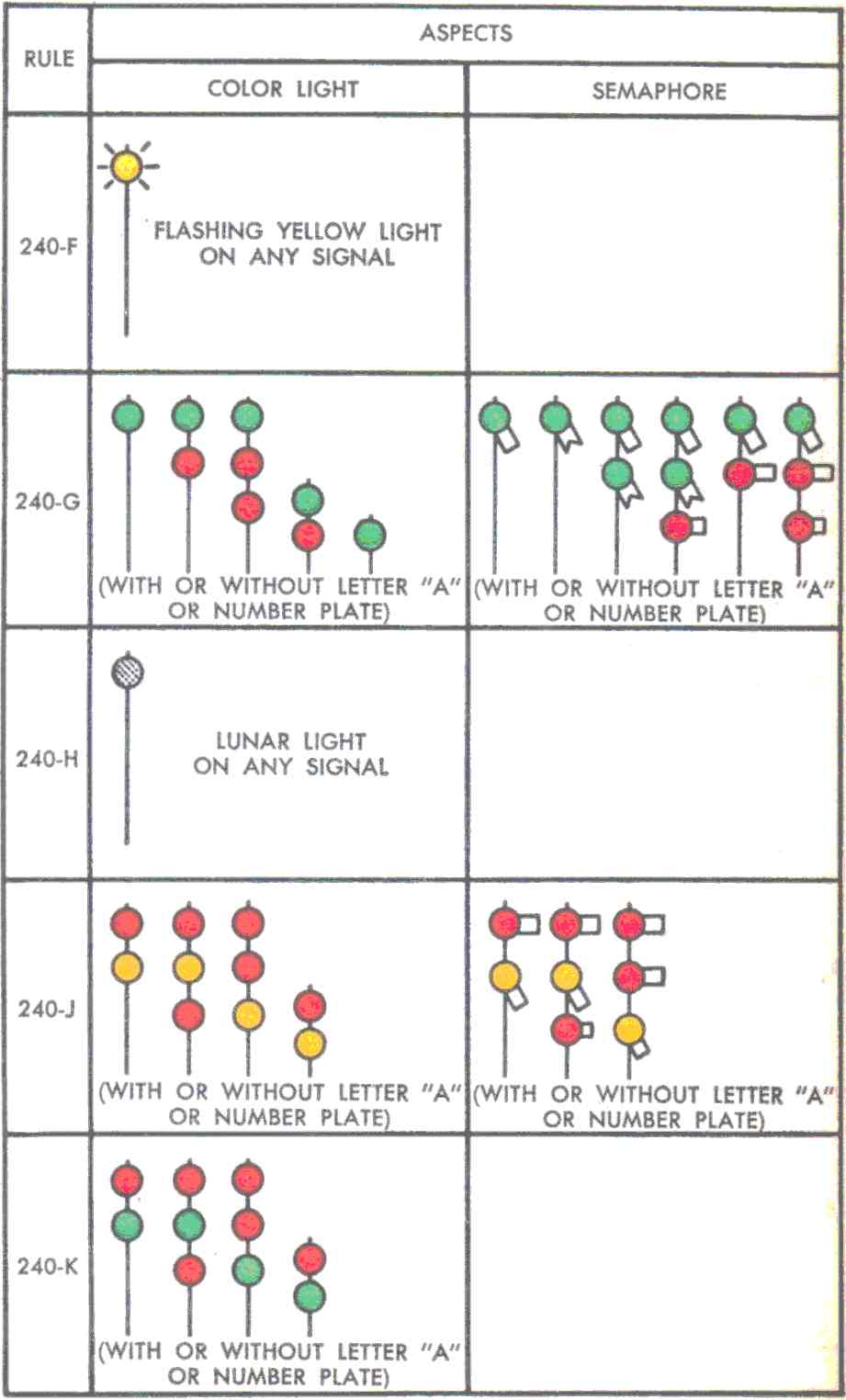 semaphore arms, color of lights, flashing of lights, position of lights,